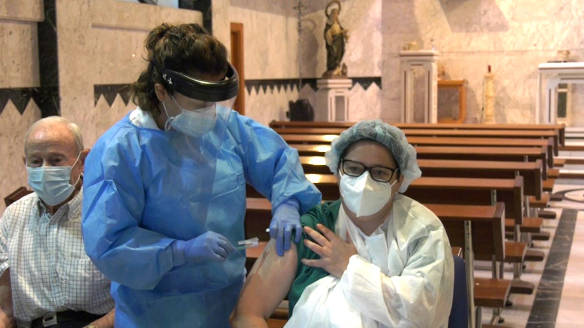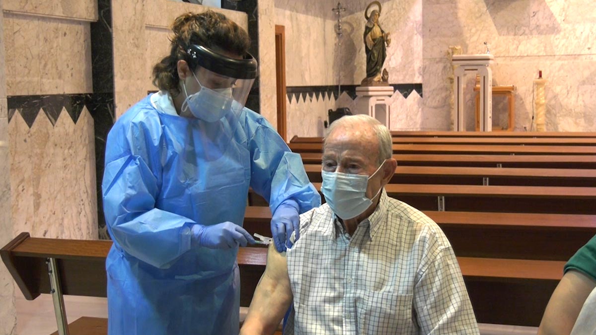 Áureo, un hombre de 88 años y usuario de la Residencia Santa Eugenia de Cevico de la Torre (Palencia), ha sido la primera persona de Castilla y León en recibir la vacuna contra el coronavirus. Le han administrado la primera de las 122 dosis que se pondrán este domingo entre los 82 residentes y los 40 trabajadores del centro sanitario. Además, Domitila, ha sido también la primera de las empleadas de la residencia en vacunarse.