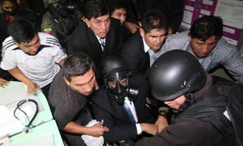 Durante la rueda de prensa, Correa fue informado por un integrante de su Gobierno de la muerte de un Policía en el operativo que ha servido para liberarle del Hospital Metropolitano de Quito. "Ojalá que estén satisfechos los que han instigado de todo esto, porque insisto en que esto es una conspiración que ha venido fraguándose para que haya derramamiento de sangre y con eso desestabilizar al Gobierno", añadió.