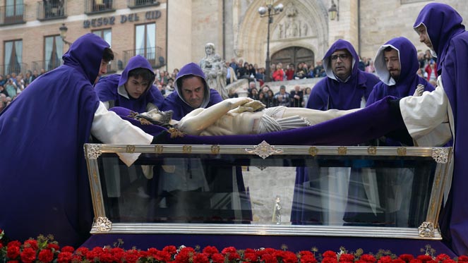 Como marca la tradición de la Semana Santa de Burgos, la Procesión del Santo Entierro volvió a emocionar y a deslumbrar a los miles de burgaleses y visitantes que abarrotaron las calles y plazas por las que pasa la procesión más importante de cuantas tienen lugar en la Semana Santa declarada de Interés Turístico Nacional. Una procesión que silencia la ciudad hasta la madrigada y que permite ver algunas de las obras de arte sacro más importantes de todos los tiempos.
