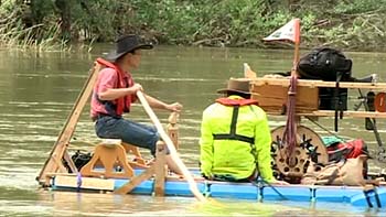 Todo empezó a finales de octubre, cuando llegó con su enorme triciclo a Santander procedente de la Isla británica de Wight. De ahí a Valladolid, donde construyó durante varios días una balsa articulada de 6 metros de largo por dos de ancho. El proceso le llevó unas dos semanas. Ubicado durante esas jornadas en la localidad vallisoletana de Simancas, y con el apoyo del ayuntamiento y los vecinos logró acabar su peculiar embarcación.