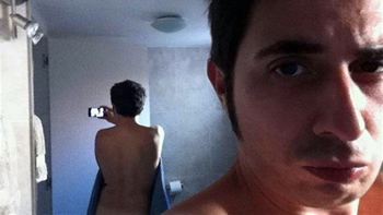 "¡A mí también me han robado fotos del móvil!", ha bromeado el sobrino de Andreu Buenafuente en el 'tweet' que acompaña a una fotografía en la que intenta imitar el mismo pose que hace la conocida actriz frente al espejo.
