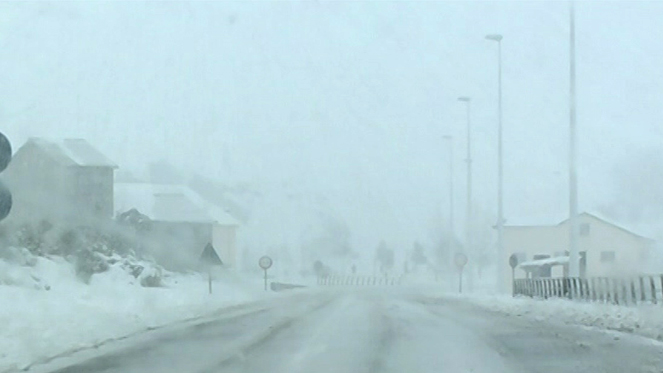 A esta hora, la nieve se acumula en la calzada y ningún vehículo puede circular por esta autovía.