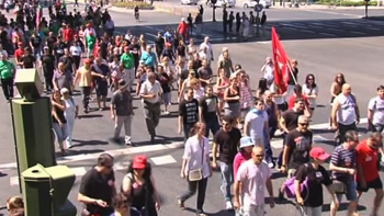 La protesta concluirá frente a la sede del Ministerio de Industria, Energía y Turismo sobre las 14.00 horas y a ella acuden representantes de partidos y organizaciones de izquierda.