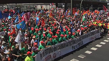 A la manifestación acuden también los secretarios generales de UGT y CC.OO., Cándido Méndez e Ignacio Fernández Toxo, respectivamente, quienes intervendrán al término de la marcha junto a los responsables de las federaciones de industria de ambas centrales sindicales, esto es, Antonio Deusa y Felipe López.