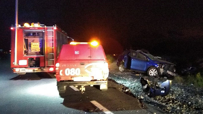 A las 5,17 horas de este sábado, una llamada al Centro de Emergencias Castilla y Leon 112 alertaba del accidente registrado en el kilómetro 243,555 de la N-110, pasado el polígono de Vicolozano, en dirección Madrid a consecuencia del cual había resultado herida al menos una persona, un varón quien además permanecía atrapado en el interior del vehículo.