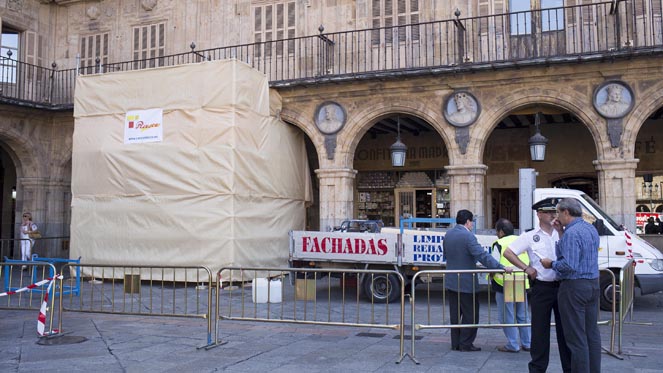 Por este motivo, el Ayuntamiento de Salamanca destacó en el anuncio de la adjudicación que "ha respetado en todo momento las decisiones de las autoridades competentes respecto al medallón" y que "la retirada del relieve escultórico se realizará garantizando que no se produzca ningún daño en la Plaza Mayor, monumento declarado de Bien de Interés Cultural".