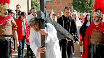 El principal actor de la Pasión Grijotana, el vecino Ignacio Reguero, que por decimotercer año consecutivo asumió el papel estelar de Jesús el Nazareno, protagonizó este jueves el desarrollo del Vía Crucis Procesional Viviente portando sobre su cabeza una corona de espinas que él mismo confecciona. Unos 200 vecinos acompañaron el séquito que culminó con la Crucifixión tras 45 minutos de recorrido por Grijota, localidad del alfoz de Palencia.