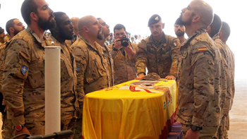 En ese momento se recibió fuego de armas ligeras desde una posición lejana, y el sargento primero Joaquín Moya Espejo, que iba equipado con su correspondiente chaleco antibalas, fue alcanzado en el tórax por un disparo, según detalló Defensa.