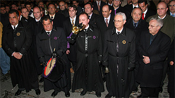 La última cita fue en el denominado 'encierro del abad' de la cofradía en su domicilio, quien recibió un toque de ronda en el portal y otro una vez que se había entrado en su domicilio para ir a recogerle al alba, momento en el que se dio comienzo a la procesión, alrededor de las 6.30 de la mañana.