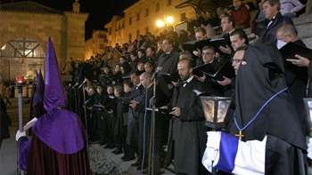 La amenaza de lluvia no impidió anoche la salida de la procesión de la Penitente Hermandad de Jesús Yacente y el canto del Miserere, entonado por los cofrades en la plaza de Viriato, ante cientos de personas. Se trata de uno de los momentos más emblemáticos y cumbres de la Semana Santa de Zamora, declarada de Interés Turístico Internacional.
