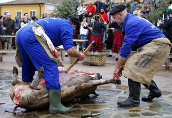 Hoy en día mucha menos gente se dedica a hacer la matanza de forma tradicional. Cuando mataban al cerdo le hacían dos tajadas: una en la cabeza y otra en el lomo. Se dejaba colgado el animal uno o dos días para que desangrase y la sangre se recogía en un caldero para las morcillas. Después se estazaba.