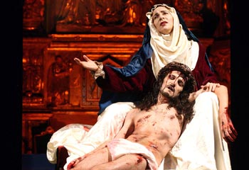 La escenificación se prolonga durante 80 minutos y está inspirada en el trayecto que mediaba entre los ministerios medievales hasta el teatro religioso del Siglo de Oro, recorriendo la imaginería procesional barroca. Dirigida por Fernando Urdiales, la puesta en escena se dota de una sobria espectacularidad y gran belleza plástica y cuenta con momentos de gran emoción como la crucifixión o el descendimiento.
