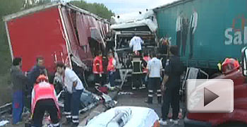 El suceso ha tenido lugar pasadas las 18.00 horas de esta tarde cuando, por causas desconocidas, un camión ha invadido la mediana y ha colisionado frontalmente con otro vehículo de gran tonelaje.