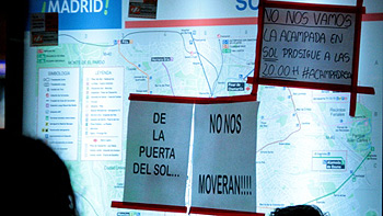 Ajenos al desalojo de la plaza, un grupo de 'indignados' permanece acampado en Sol, tal y como se anunciaba en la asamblea que resolvió desalojar la plaza. Así, unas quince tiendas de campaña prosiguen la acampada de protesta, así como una carpa cubierta con lonas que contiene restos de materiales.
