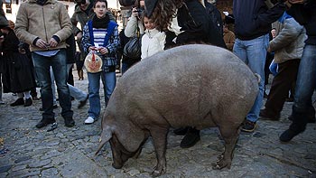 La localidad salmantina de La Alberca, fiel a su tradición, ha bendecido al ‘marrano de San Antón’, un cerdo que durante más de seis meses andará suelto por las calles del municipio como un atractivo más y al que alimentan vecinos y visitantes para luego sortearlo con fines benéficos.