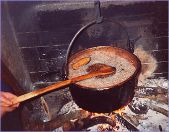Para elaborar este plato se utilizaba un pote, que era una vasija redonda con barriga, boca ancha y tres pies, que solía tener dos asas pequeñas, una a cada lado, y otra grande en forma de semicírculo.