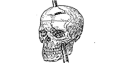 El 13 de septiembre de 1848 una barra de hierro atravesó la cabeza de Phineas Gage a la velocidad de una bala. La vara, de 2,5 centímetros de grosor y 6 kilos de peso, entró por debajo de la mandíbula y salió por la parte superior del cráneo aterrizando 25 metros más allá.