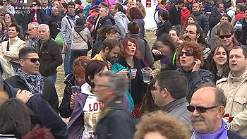 Algunos miembros de la Federación de Asociaciones de Vecinos iban disfrazados de cabezudos y llevaban carteles con mensajes como 'Tenemos bocadillos de Bárcenas' y 'No nos quites los médicos de nuestros pueblos'. También se vieron puestos de Adicae y de Gamonal, que lucía una pancarta que decía: 'Nos estáis obligando a sentir cada vez más odio'.