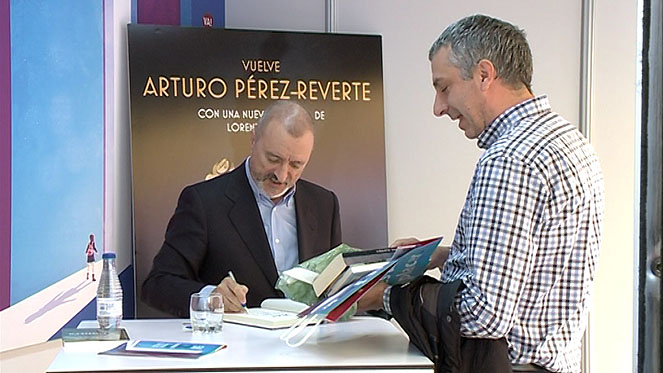El escritor Arturo Pérez-Reverte firmó este sábado ejemplares de su última novela 'Los perros duros no bailan' dentro de la Feria del Libro de Valladolid que arrancó ayer. Según la organización, se calcula que más de 300 personas pasaron a lo largo de la mañana por la caseta. Las ventas también tuvieron un gran éxito, con casi un centenar de ejemplares vendidos de su último trabajo, a los que hay que sumar las de otros anteriores.