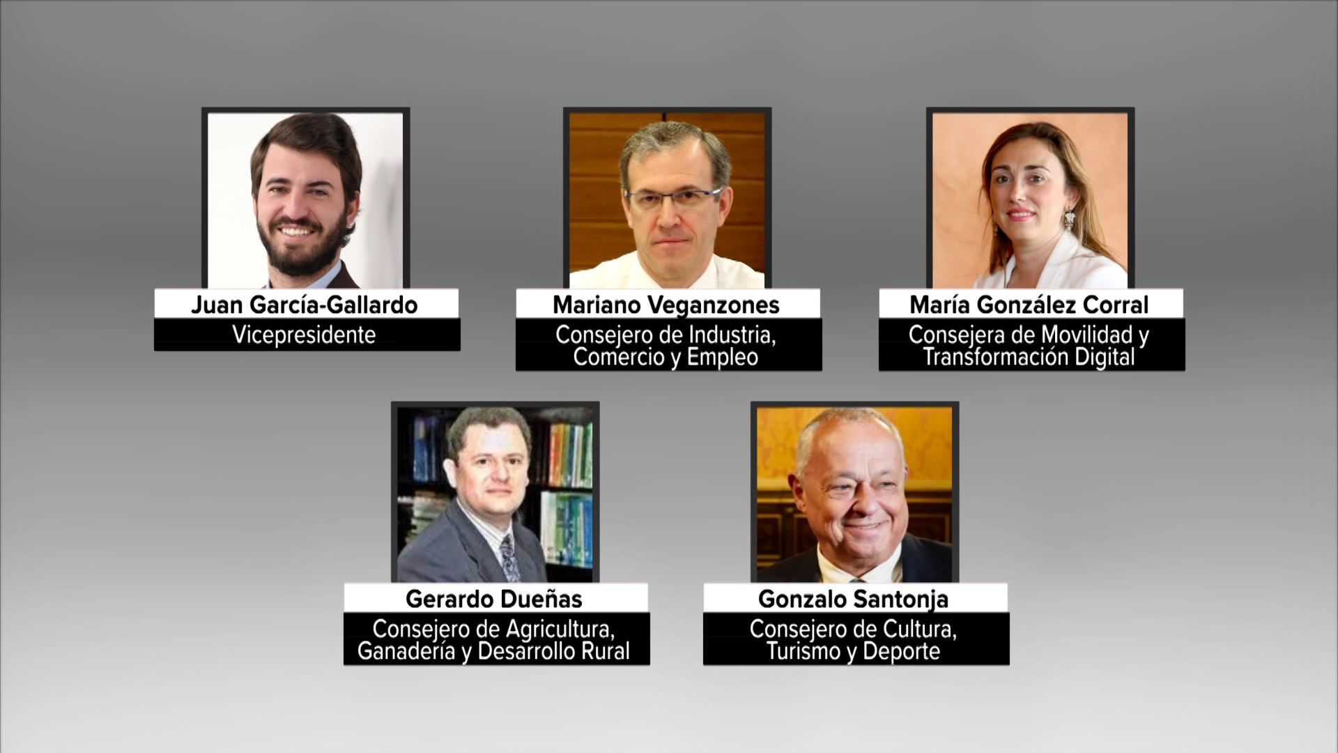 Finalmente, ha confirmado los nombramientos ya conocidos en las consejerías de Vox: Gerardo Dueñas, en Agricultura, Ganadería y Medio Rural; Gonzalo Santonja, en Cultura, Turismo y Deporte, y Mariano Veganzones, en Industria, Empleo y Comercio, además de la del vicepresidente, Juan García-Gallardo.