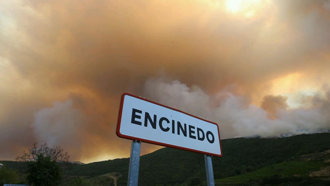 En el fuego de Encinedo, cuyo origen es intencionado, trabajan unas 300 personas y se mantiene nivel 2 del Plan de Protección Civil ante emergencias por incendios forestales (Infocal).