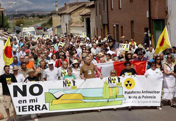Cientos de personas se han manifestado en Congosto de Valdavia contra la posible instalación del Almacén Temporal Centralizado de residuos nucleares y contra la modificación de la norma urbanística que ha hecho posible la candidatura de este municipio palentino.