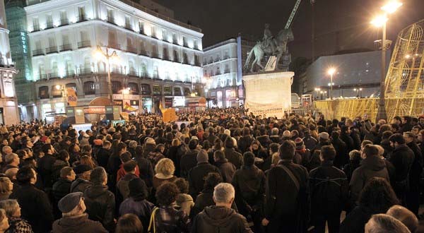 Centenares de personas de distintos puntos del país se concentraron este miércoles durante casi dos horas en la Puerta del Sol solidarizándose con el barrio burgalés de Gamonal.