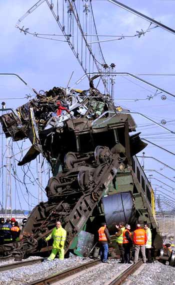 Asimismo, los bomberos se han visto obligados a requerir la intervención de dos grúas de gran tonelaje para recuperar el cadáver del amasijo de hierros en que han quedado los dos trenes. Sin embargo, continúan trabajando para que la dos grúas puedan actuar en el lugar, lo que también determinará el número de efectivos que finalmente tendrán que actuar.