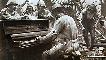 "La guerra no puede ser tan insoportable como nos la habían pintado los novelistas humanitarios […] horrible sí que debe de serlo […] pero, en cambio, se siente todo el tiempo la sensación de que nuestra voluntad se está realizando […] Se recupera el sentido de la aventura. Las historias cesan de ser historias. Se es uno mismo Historia”, decía Ramiro de Maeztu en Inglaterra en Armas, una compilación de artículos publicados originalmente en el periódico conservador La Correspondencia de España y en La Prensa de Argentina. También aparecieron en inglés en el semanario socialista The New Age en una serie titulada Una visita al frente.