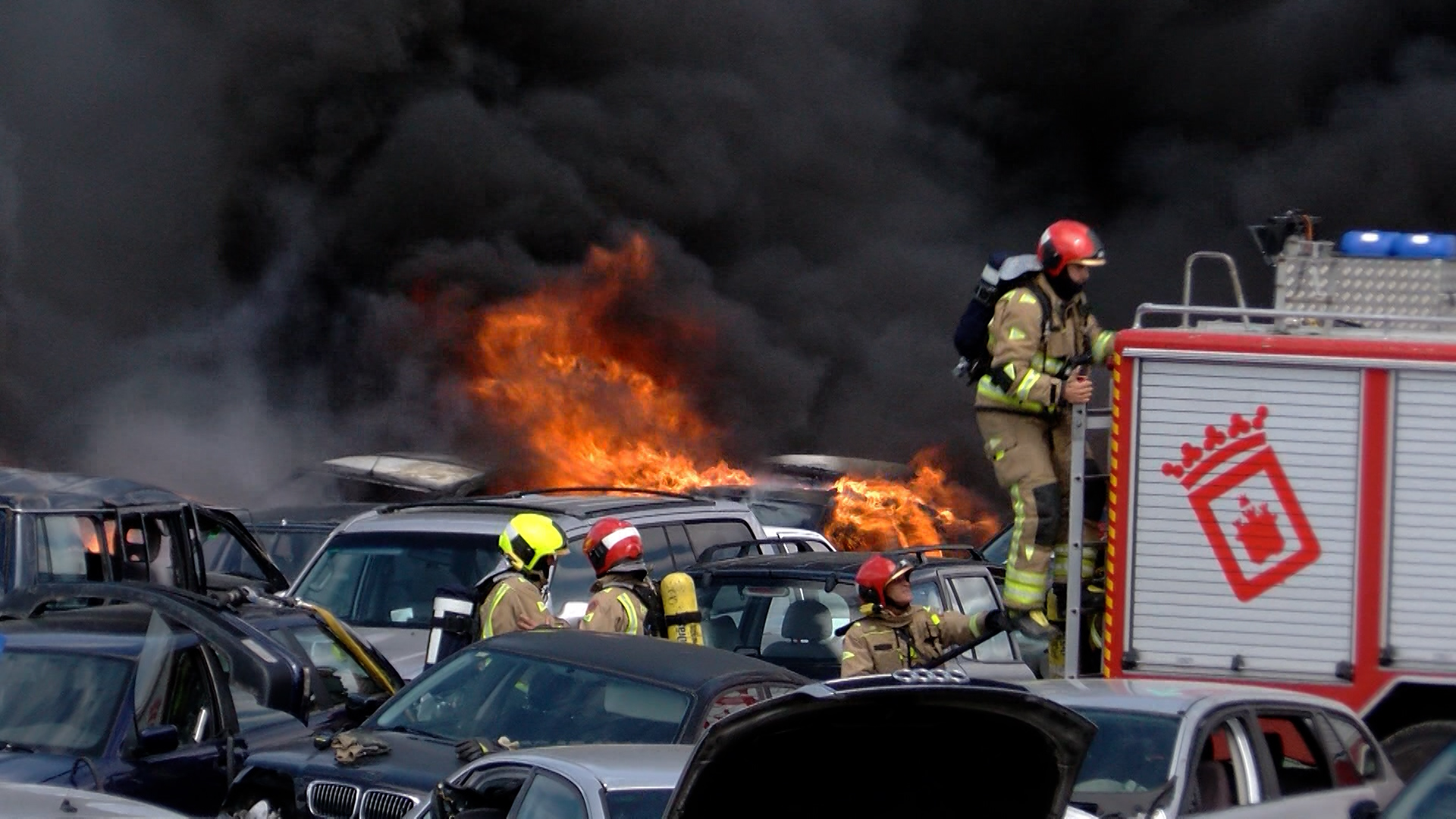 Actualmente, las 17.30 horas, el incendio se considera controlado aunque no extinguido, porque sigue apareciendo humo en distintos vehículos. Según han confirmado desde el cuerpo a Ical, la intervención ha sido complicada porque se producían explosiones provocadas por los airbag, lunas, ruedas, el tipo de material de los coches y demás.