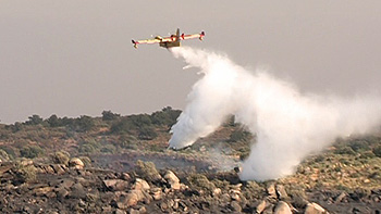 Por la mañana habían dado por extinguidos tres focos en los montes cercanos. Pero a primera hora de la tarde las llamas regresaban, esta vez desde un cuarto foco mucho más peligroso. Durante toda la tarde, más de 100 efectivos, incluidos 5 helicópteros y un hidroavión se esforzaban por controlar un fuego cuyo carácter intencionado nadie duda.