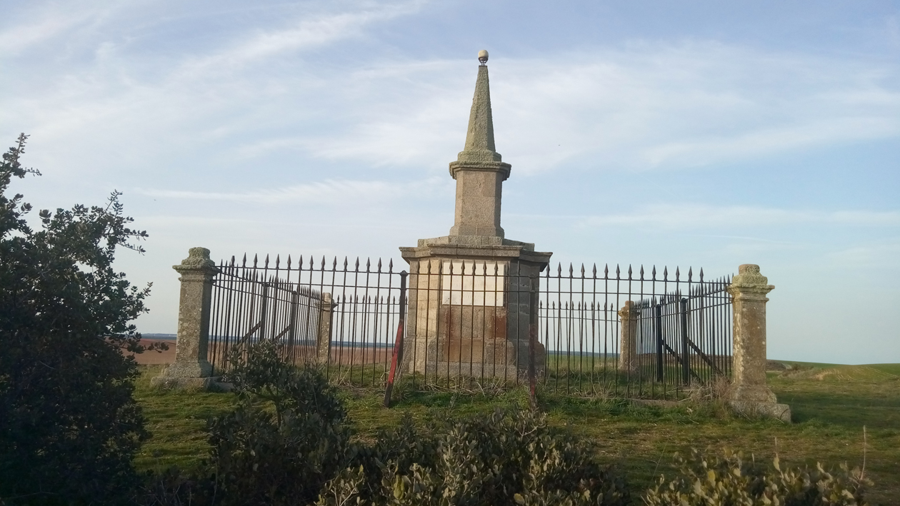 Vagando por una ruta entre caminos agrícolas, por los mares de cereal, se encuentra el primer monumento erigido a Colón en España. Se trata de un monolito en forma de pirámide en cuyo vértice se encuentra un globo terráqueo sobre 4 pedestales dóricos. Fue creado en 1866 por Mariano Solís y restaurado en 1979 por Rafael Sánchez Fabrés.