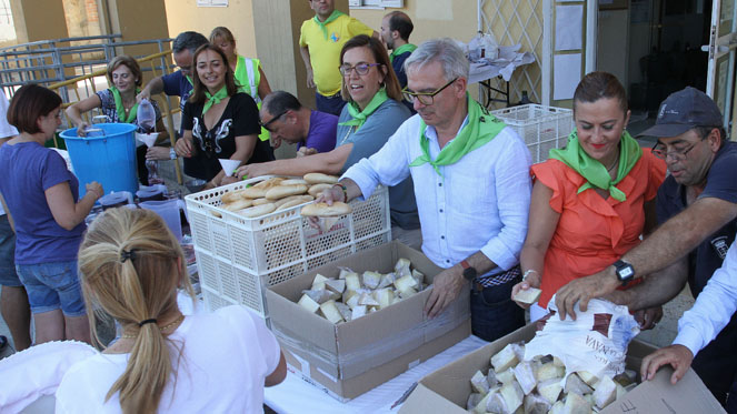 La delegada del Gobierno en Castilla y León, Virginia Barcones, participó en esta jornada festiva en la población del alfoz palentino, donde recibió la pañoleta típica de manos del alcalde, Jesús María García, que la convirtió en una más, pues contribuyó junto al regidor, el subdelegado del Gobierno, Ángel Miguel Gutiérrez; y la presidenta de la Diputación Provincial, Ángeles Armisén, a la entrega de estos simbólicos alimentos entre los vecinos que abarrotaron el casco antiguo del municipio.