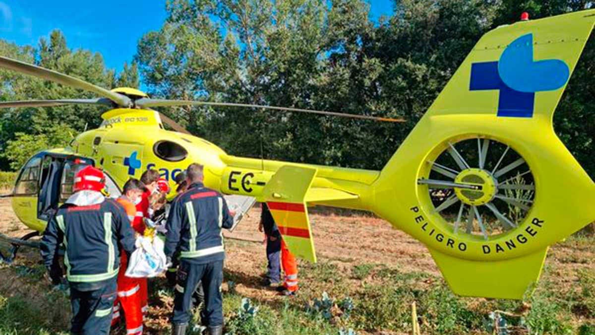 Tras ser atendido, el personal sanitario trasladó al herido en helicóptero medicalizado al Complejo Asistencial de Burgos.