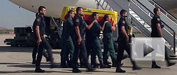 En el avión, un Airbus A-310 del 45 Grupo de la Fuerza Aérea española, han viajado, custodiando los restos mortales, el jefe de Estado Mayor de la Defensa, general del Aire José Julio Rodríguez, y el director de la Policía y de la Guardia Civil, Francisco Javier Velázquez.