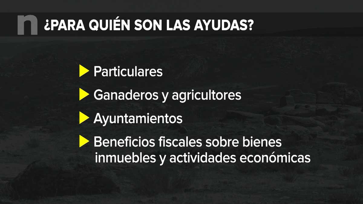 Las personas afectadas, físicas, jurídicas y corporaciones municipales, podrán beneficiarse de medidas y ayudas destinadas a paliar daños de índole personal y material sufridos por infraestructuras, viviendas, establecimientos agrarios o instalaciones ganaderas. Las ayudas irán dirigidos a: