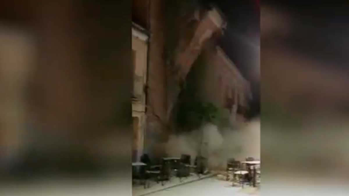 La Policía Local acordonó la zona para evitar que el público pudiese acercarse peligrosamente al edificio, del que aún quedaba este martes por la mañana en pie, de forma muy inestable ya, una chimenea.