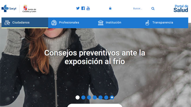 Además, la portada incorpora una sección tipo 'carrusel' en la que se destacan contenidos apropiados a cada época del año --actualmente informaciones sobre la vacunación de la gripe, consejos ante el frío y para el consumo de setas o con campañas informativas--.