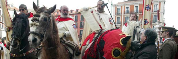 Un soneto del fallecido periodista, poeta y ex director del Norte de Castilla Félix Antonio González, que ya sirvió de pregón en 1954, ha vuelto a resonar por las calles de Valladolid, en un día luminoso y frío, y a convocar a los ciudadanos y fieles al sermón que tendrá lugar este mediodía en la Plaza Mayor.