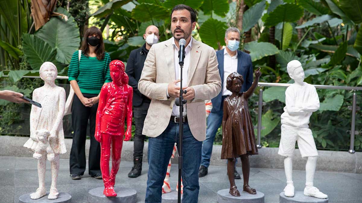 El ministro de Consumo, Alberto Garzón, presentó este sábado la campaña 'Hijos del azúcar', con la que su departamento pretende "concienciar" a padres y madres sobre los efectos del consumo "excesivo" de azúcares en menores y en el marco de la cual ha instalado una exposición en el jardín tropical de la estación ferroviaria Madrid Puerta de Atocha que recrea seis esculturas de menores de entre 9 y 12 años fabricadas a escala real y que representan la cantidad de azúcares aproximada que consumen de media cada año.
