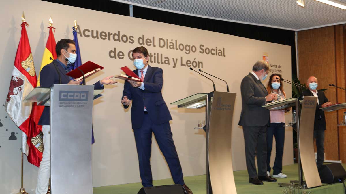 Con esta nueva rúbrica son ya once los acuerdos suscritos en lo que va de legislatura y un centenar en los últimos 20 años, según ha destacado Mañueco, quien ha apuntado también que el objetivo de los mismos es "mejorar la vida y las expectativas de las personas de Castilla y León, conseguir una sociedad más justa, próspera y solidaria y apostar por una cohesión económica, social y territorial".