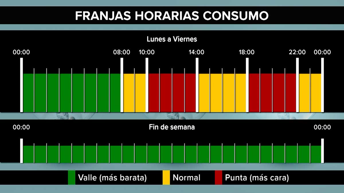 - La valle, la más barata, de 00.00 horas a 08.00 de lunes a viernes, además de fines de semana y festivos durante todo el día.