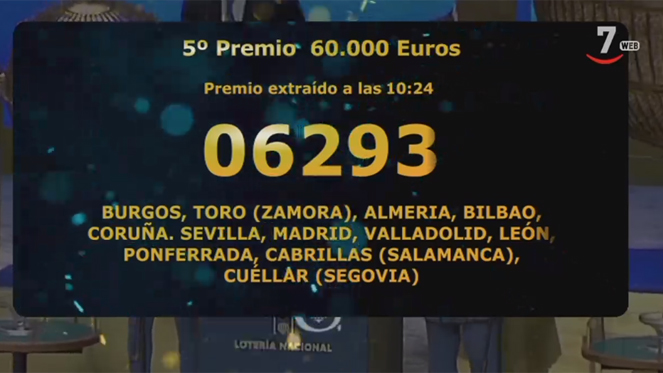 La localidad zamorana de Toro y Burgos capital resultaron hoy agraciadas con el segundo quinto premio del Sorteo Extraordinario de Navidad, organizado por Loterías y Apuestas del Estado. Del número 6.293, premiado con 6.000 euros al décimo, se repartieron 30 series (de la 78 a la 107) en la Administración de Lotería numero 1 de Toro, ubicada en el número 33 de Puerta del mercado, en Toro, y otras dos series más (la 1 y 2) en la Administración de Lotería número 16 de Burgos, emplazada en el número 20 de la Avenida del Cid de Burgos.