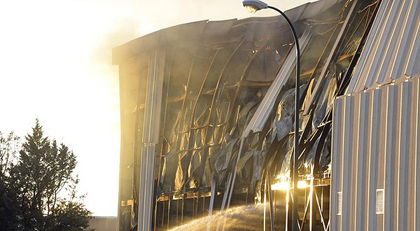 Una dotación de bomberos, compuesta por seis efectivos del Parque de Burgos, continúa trabajando en labores de control del grave incendio en la planta de Burgos de Campofrío, que se inició el pasado domingo. Un trabajo que se desarrolló durante toda la noche y que contó con la ventaja de que se pudo acceder al interior de la factoría con un sistema de manguera.