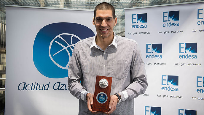 Nacho Martín ha recogido en la sede central de Endesa en Madrid el Premio Actitud Azul que le ha distinguido como el jugador de la ACB que mejor ha combinado esta temporada los valores de actitud, liderazgo, generosidad, eficacia y entrega, bajo los que se ha regido la elección para este galardón y las nominaciones semanales al Mejor Quinteto de la jornada.