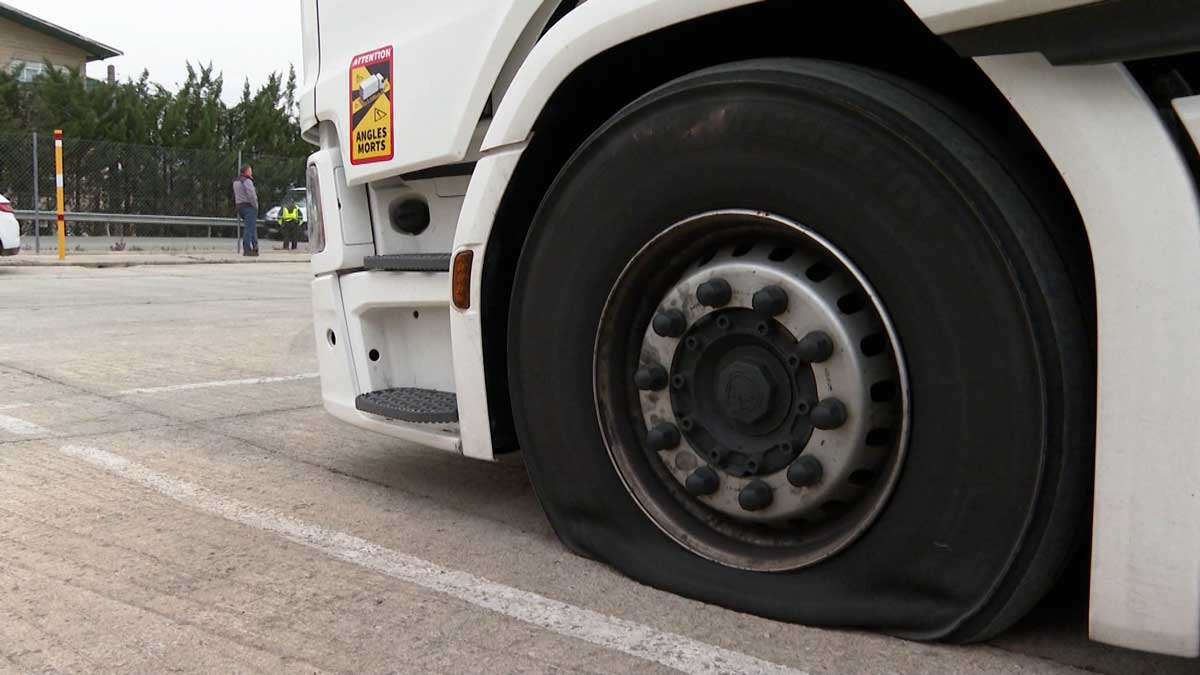 Este miércoles han cortado la autovía del noroeste y también la N-6. Los que realizaban viajes nacionales e internacionales, y que no participaban en este parón, han sido desviados de su ruta a un aparcamiento de invierno. Más de una decena de vehículos tienen las ruedas pinchadas.