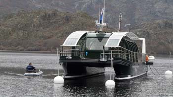 Por lo que se refiere a la accesibilidad, el Helios Cousteau dispone de una plataforma que permitirá el acceso de personas con movilidad reducida desde las propias canoas y de un malecón escamoteable de cinco metros para dar paso a los pasajeros. "Dado que íbamos a trabajar en un parque natural, no requerimos infraestructuras flotantes. En zonas sensibles, es un sistema que nos permite eliminar infraestructuras", anota David Salvador.