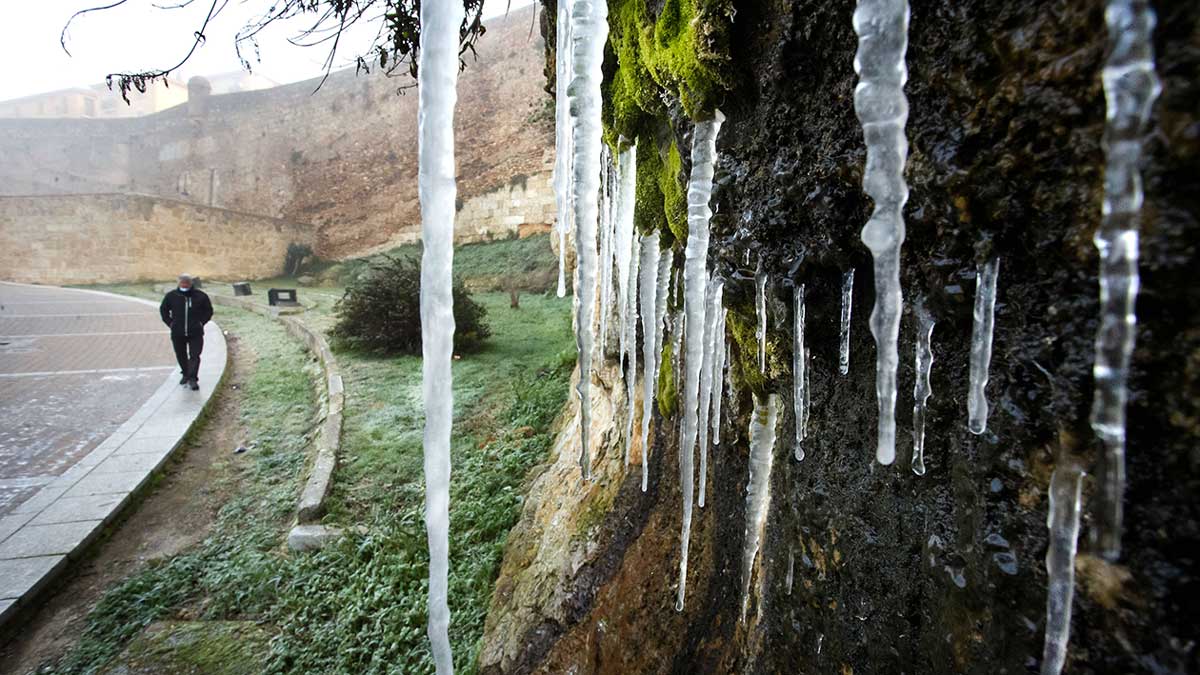 A estas horas, la nieve y el hielo enviados por la borrasca cierran ocho tramos de carreteras en la Comunidad, principalmente en puertos, y con especial incidencia en las provincias de León y Burgos, aunque también se ha dejado notar en Zamora, Salamanca y Ávila. Además, las presencia de nieve sobre la calzada obliga a usar cadenas en siete vías y a extremar la precaución en otras 15, según informa la Dirección General de Tráfico (DGT). Será a partir del día de hoy cuando este episodio de nieve y bajas temperaturas se deje notar en el total de la Comunidad que, de momento, ha dejado 15 grados bajo cero esta noche en Villablino (León) y Palacios de la Sierra (Burgos), y 13,8 en San Pedro Manrique (Soria), mínimas que continuarán el fin de semana.