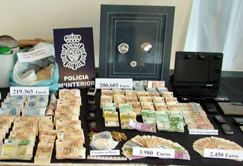 Además se les incautó una máquina de contar dinero, numerosa documentación bancaria, contabilidad parcial manuscrita en la que recogían las cantidades enviadas y las comisiones que le correspondían a cada uno de ellos.