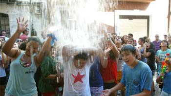 Puntuales, como todos los años, las peñas del pueblo vallisoletano iniciaron este primer pasacalles de las fiestas de Nuestra Señora y San Roque, declaradas de Interés Turístico Regional en 1997, junto a forasteros llegados de todas las provincias de la Comunidad, al compás del 'Chúndara tarata Chúndara', adaptación del pasodoble 'La entrada de Esquembre, con su famosa letra 'Viva el pijo del tío Bernardo'.